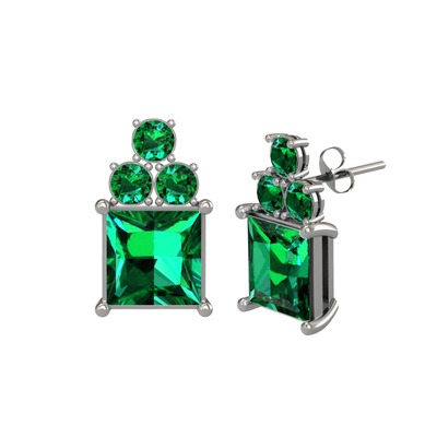 Yeşil kuvars 8 ayar beyaz altın küpe