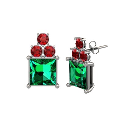 Yeşil kuvars ve garnet 18 ayar beyaz altın küpe
