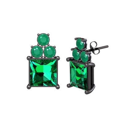 Yeşil kuvars ve kök zümrüt 925 ayar siyah rodyum kaplama gümüş küpe