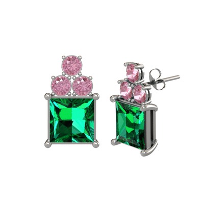 Yeşil kuvars ve pembe kuvars 14 ayar beyaz altın küpe