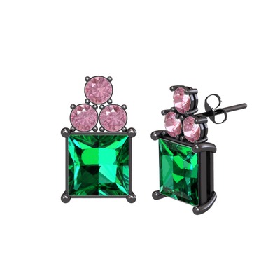 Yeşil kuvars ve pembe kuvars 925 ayar siyah rodyum kaplama gümüş küpe