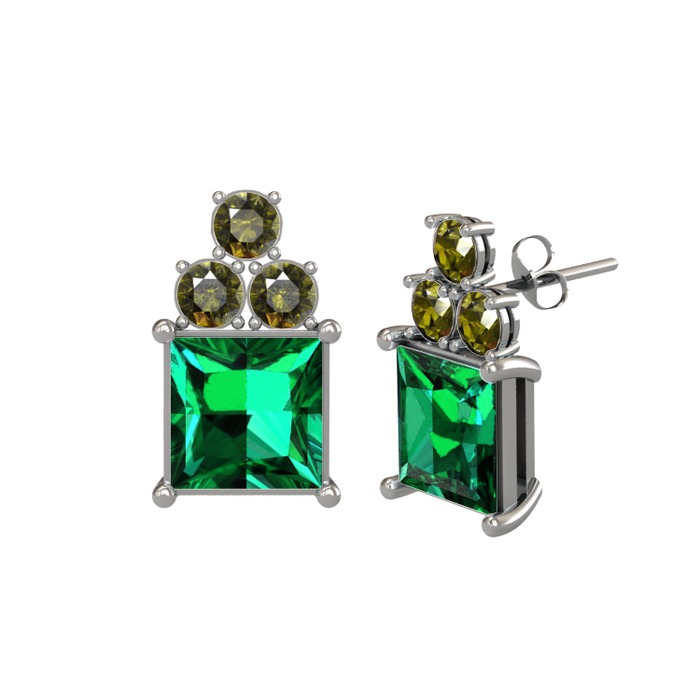 Yeşil kuvars ve peridot 8 ayar beyaz altın küpe