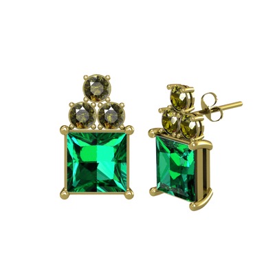 Yeşil kuvars ve peridot 925 ayar altın kaplama gümüş küpe