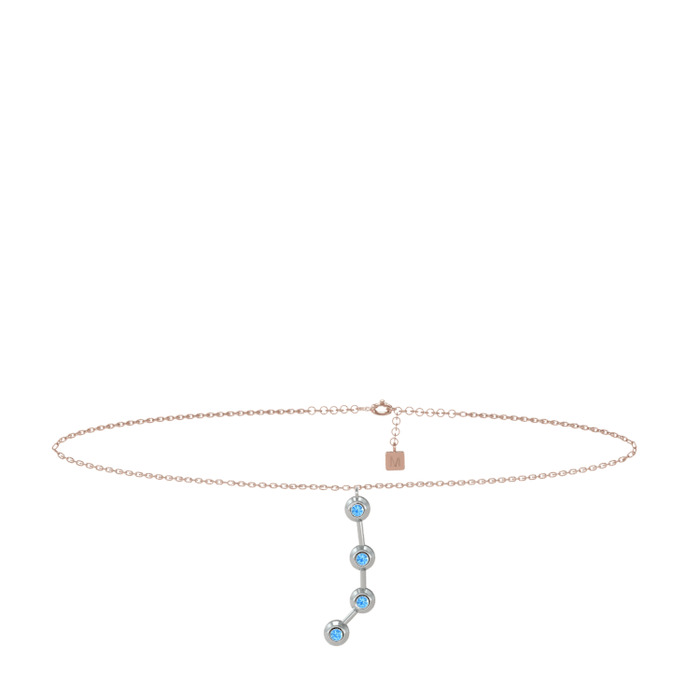 Akuamarin 18 ayar beyaz altın bilezik (20 cm rose altın rolo zincir)