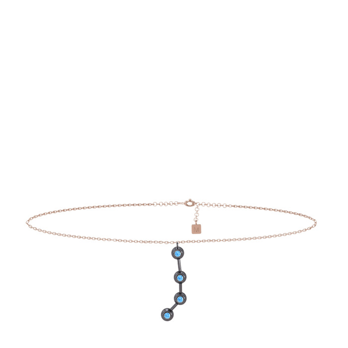 Akuamarin 925 ayar siyah rodyum kaplama gümüş bilezik (20 cm rose altın rolo zincir)