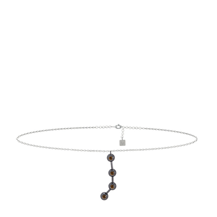 Dumanlı kuvars 925 ayar siyah rodyum kaplama gümüş bilezik (20 cm beyaz altın rolo zincir)