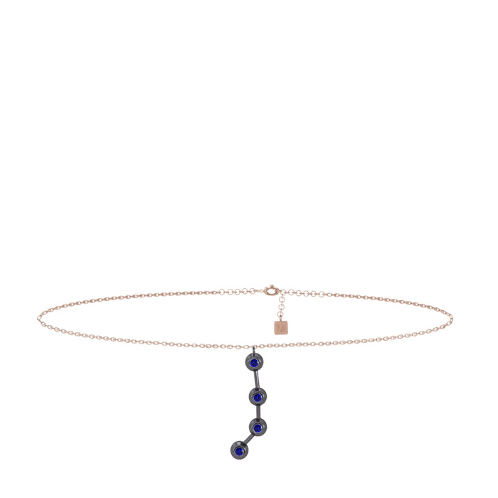 Lab safir 925 ayar siyah rodyum kaplama gümüş bilezik (20 cm rose altın rolo zincir)