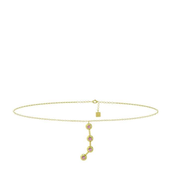 Pembe kuvars 18 ayar altın bilezik (20 cm altın rolo zincir)