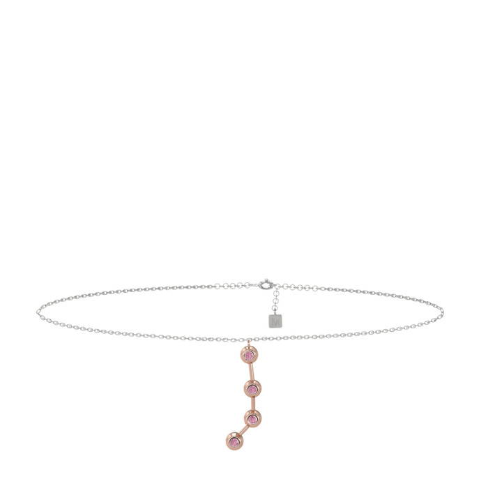 Pembe kuvars 18 ayar rose altın bilezik (20 cm beyaz altın rolo zincir)