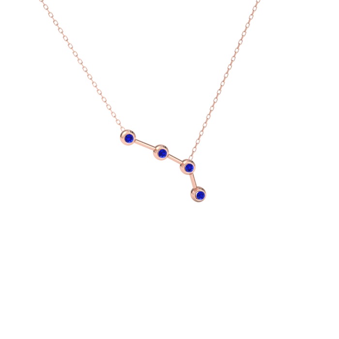 Lab safir 18 ayar rose altın kolye (40 cm rose altın rolo zincir)