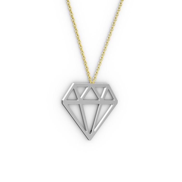 14 ayar beyaz altın kolye (40 cm gümüş rolo zincir)