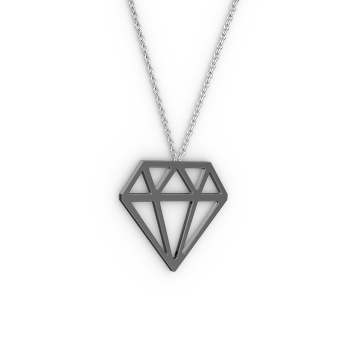 925 ayar siyah rodyum kaplama gümüş kolye (40 cm beyaz altın rolo zincir)