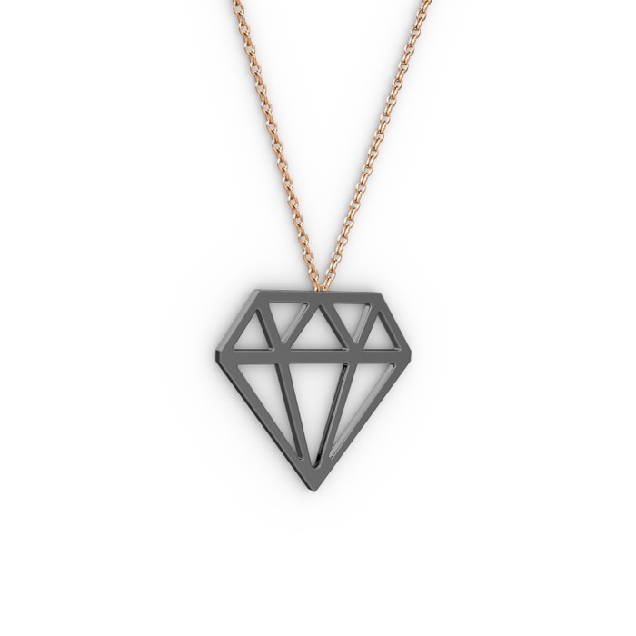 925 ayar siyah rodyum kaplama gümüş kolye (40 cm rose altın rolo zincir)