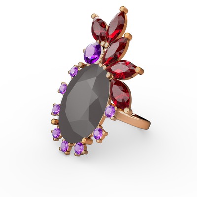 Füme akrilik, garnet ve ametist 8 ayar altın yüzük
