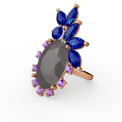 Füme akrilik, lab safir ve ametist 18 ayar rose altın yüzük