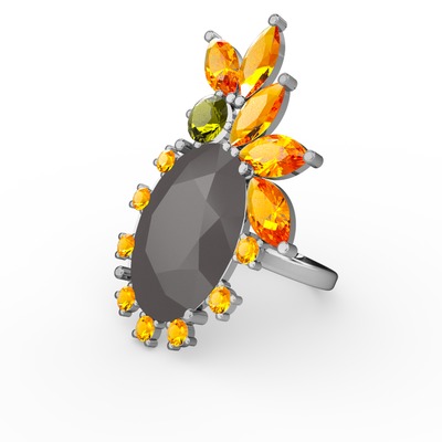 Füme akrilik, sitrin ve peridot 14 ayar beyaz altın yüzük