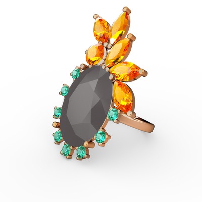Füme akrilik, sitrin ve yeşil kuvars 14 ayar altın yüzük