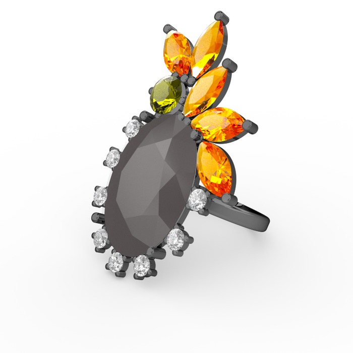 Füme akrilik 925 ayar siyah rodyum kaplama gümüş yüzük (0.48 karat)