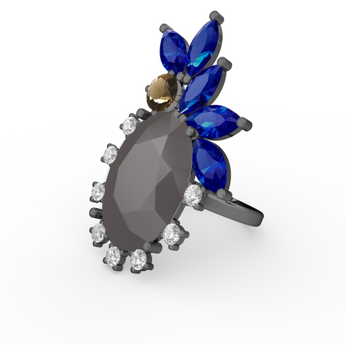 Füme akrilik 925 ayar siyah rodyum kaplama gümüş yüzük (0.48 karat)