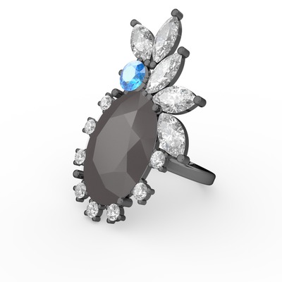 Füme akrilik 925 ayar siyah rodyum kaplama gümüş yüzük (0.48 karat)