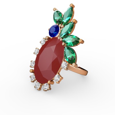 Arinna Yüzük - Kırmızı akrilik 18 ayar rose altın yüzük