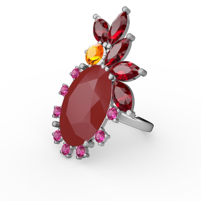 Arinna Yüzük - Kırmızı akrilik 8 ayar beyaz altın yüzük