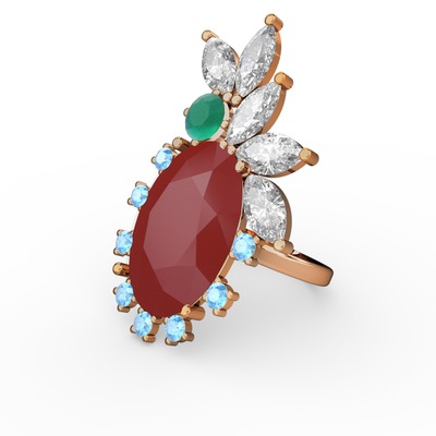 Kırmızı akrilik 8 ayar rose altın yüzük