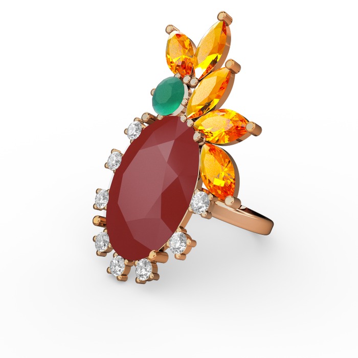 Kırmızı akrilik 8 ayar rose altın yüzük