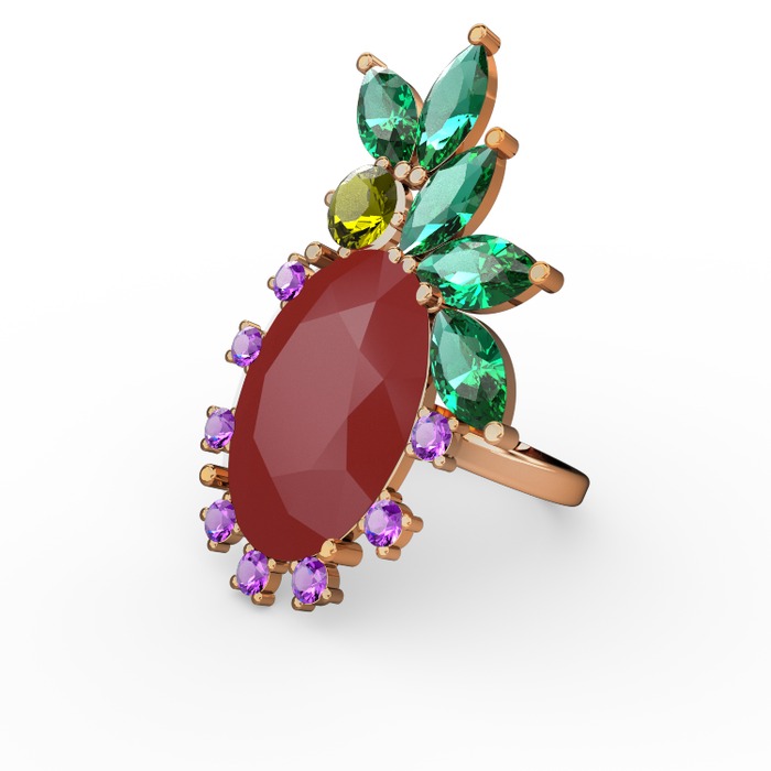 Kırmızı akrilik 8 ayar rose altın yüzük
