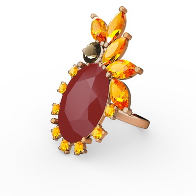 Kırmızı akrilik, sitrin ve dumanlı kuvars 14 ayar altın yüzük