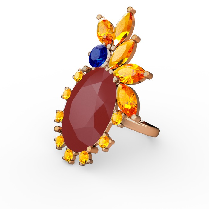 Kırmızı akrilik, sitrin ve lab safir 18 ayar altın yüzük