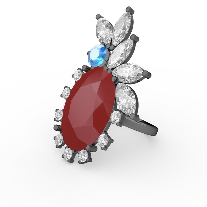 Kırmızı akrilik 925 ayar siyah rodyum kaplama gümüş yüzük (0.48 karat)