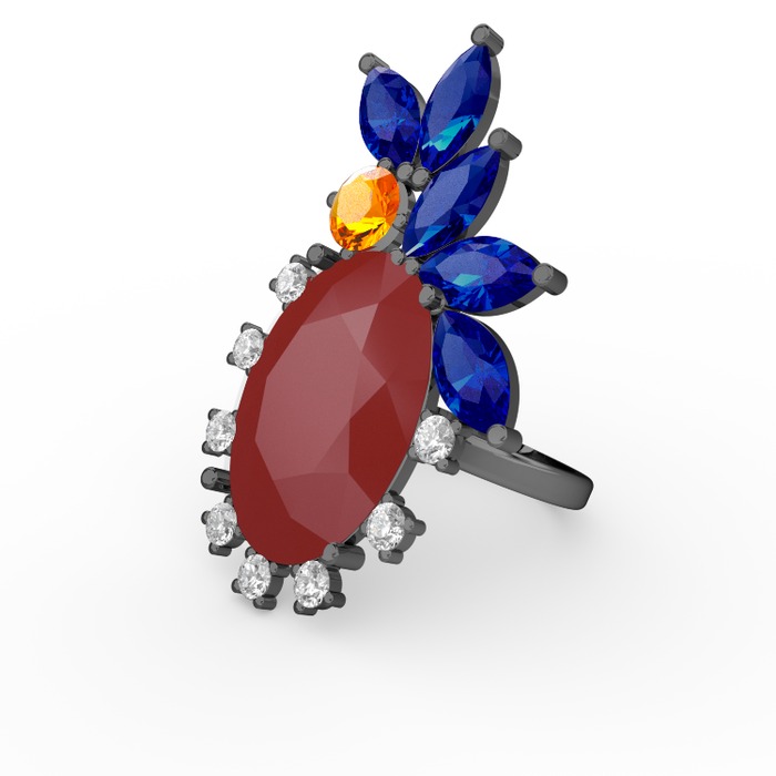 Kırmızı akrilik 925 ayar siyah rodyum kaplama gümüş yüzük (0.48 karat)