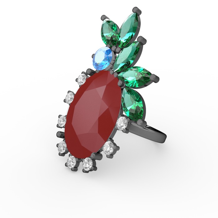 Kırmızı akrilik 925 ayar siyah rodyum kaplama gümüş yüzük (0.48 karat)