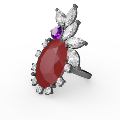 Kırmızı akrilik 925 ayar siyah rodyum kaplama gümüş yüzük