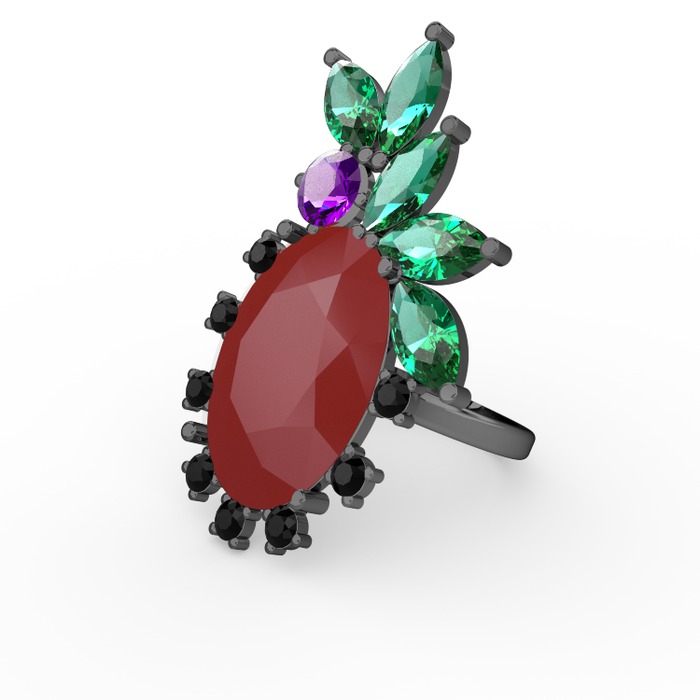 Kırmızı akrilik 925 ayar siyah rodyum kaplama gümüş yüzük