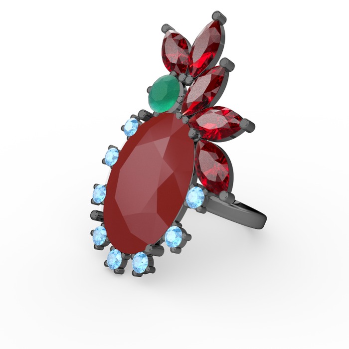 Kırmızı akrilik 925 ayar siyah rodyum kaplama gümüş yüzük