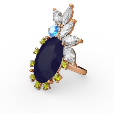 Arinna Yüzük - Lacivert akrilik 14 ayar altın yüzük