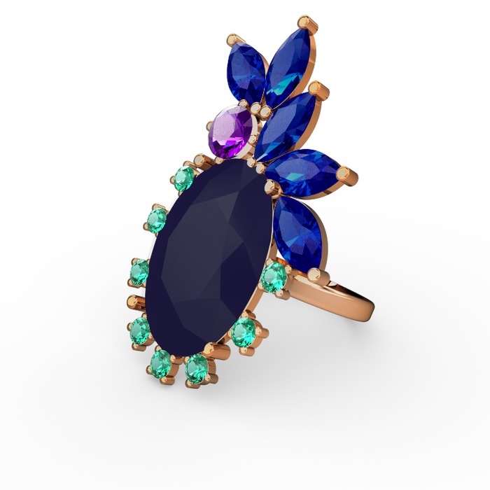 Lacivert akrilik 14 ayar altın yüzük