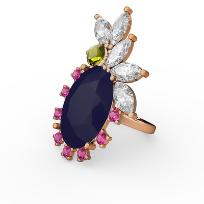 Lacivert akrilik 14 ayar altın yüzük