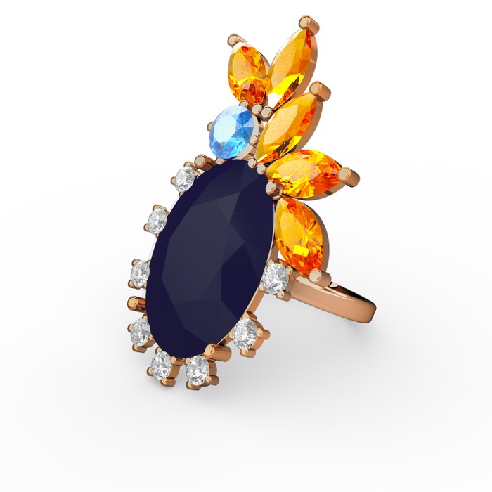 Lacivert akrilik 14 ayar altın yüzük