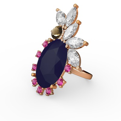 Lacivert akrilik 14 ayar altın yüzük