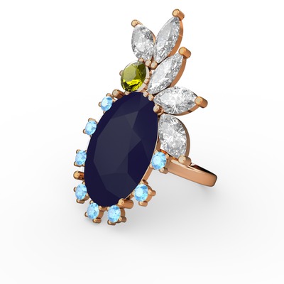 Lacivert akrilik 14 ayar rose altın yüzük