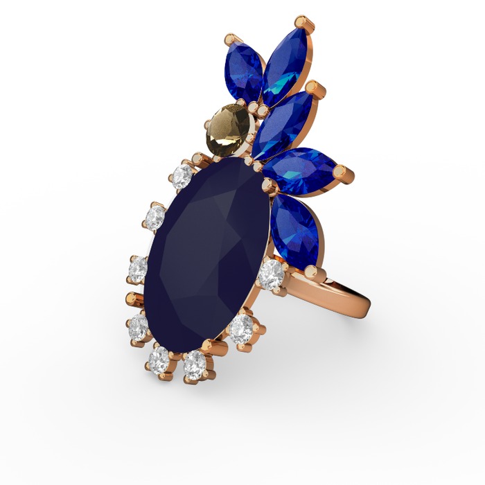 Lacivert akrilik 14 ayar rose altın yüzük