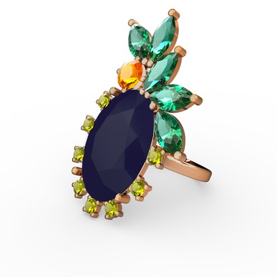 Lacivert akrilik 14 ayar rose altın yüzük