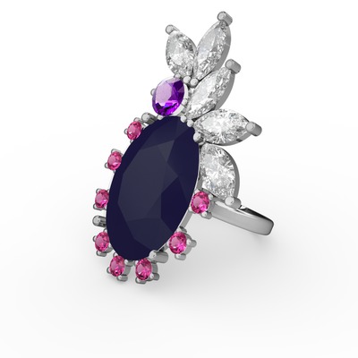Lacivert akrilik 18 ayar beyaz altın yüzük