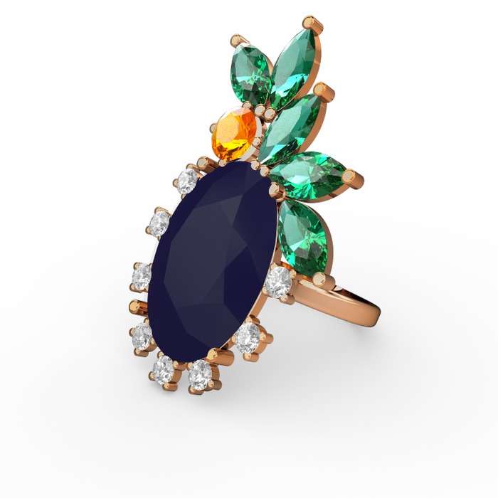 Lacivert akrilik 18 ayar rose altın yüzük (0.48 karat)