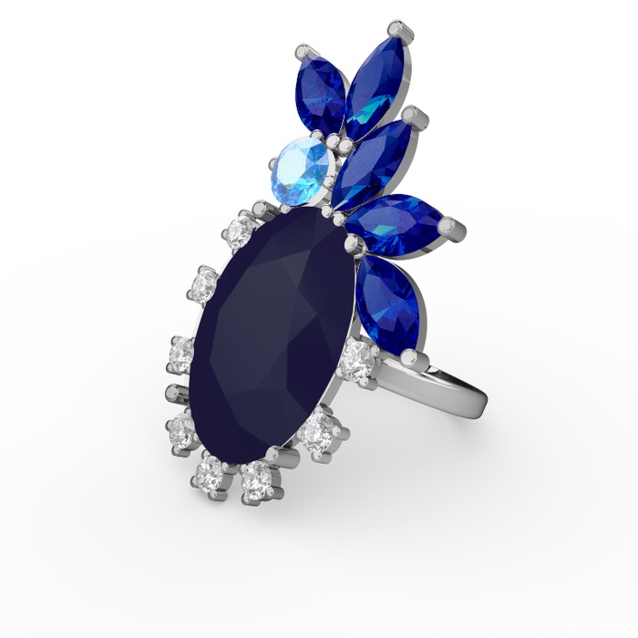 Lacivert akrilik 8 ayar beyaz altın yüzük (0.48 karat)