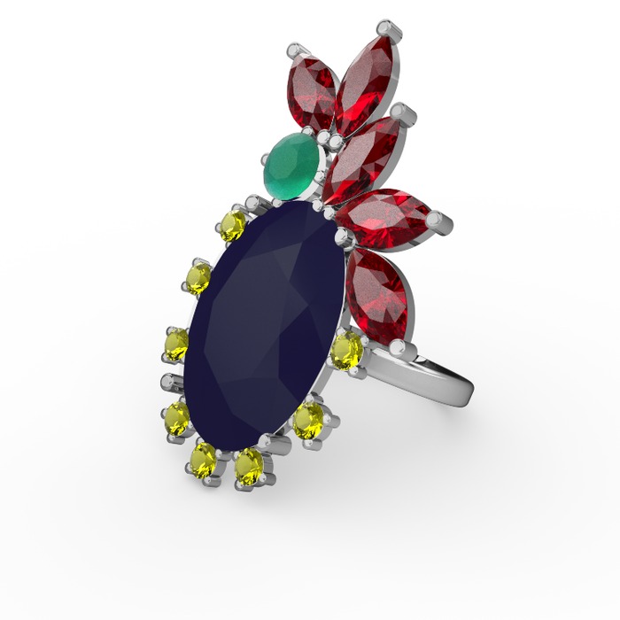 Lacivert akrilik 8 ayar beyaz altın yüzük