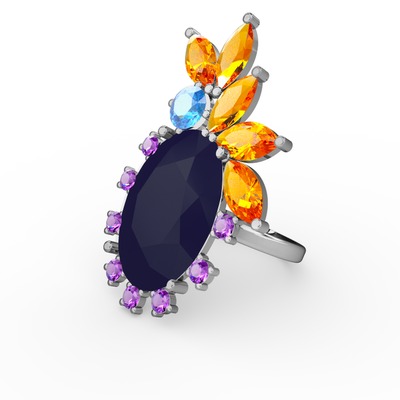 Lacivert akrilik 8 ayar beyaz altın yüzük